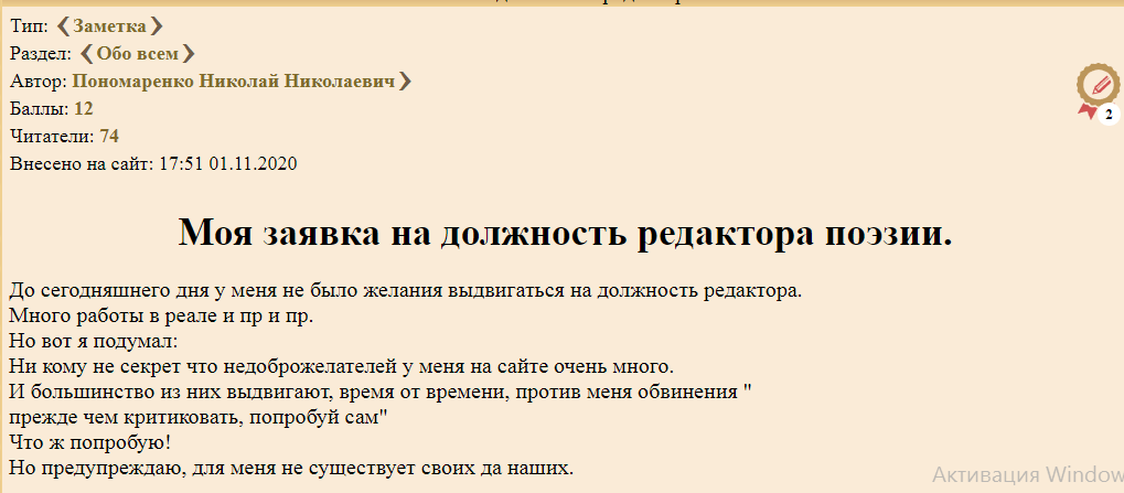 В связи с тем что приближаются выборы редактора прозы, было решено провести еще и выборы редактора поэзии для синхронизации сроков. Выборы пройдут по старой схеме в три этапа с выбором редактора на 6 месяцев.