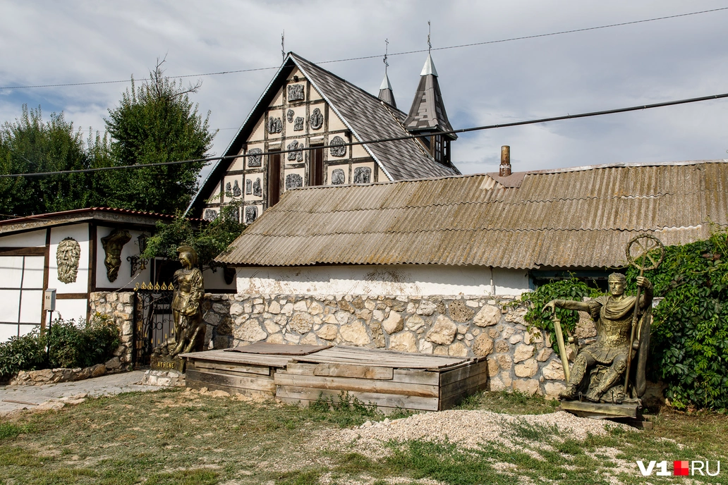В частном секторе города Фролово Волгоградской области вырос настоящий рыцарский замок с высокими колоннами, уютным прудиком, фонтаном и греческими девами в залитом зеленью саду. Архитектор уверен, что необычный особняк, словно срисованный из книги про рыцарей, появился из-за нищеты и отвращения к современным обоям.