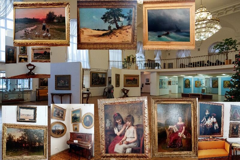 Коллаж и фото для коллажа автора. Выставка живописи в музее-заповеднике.