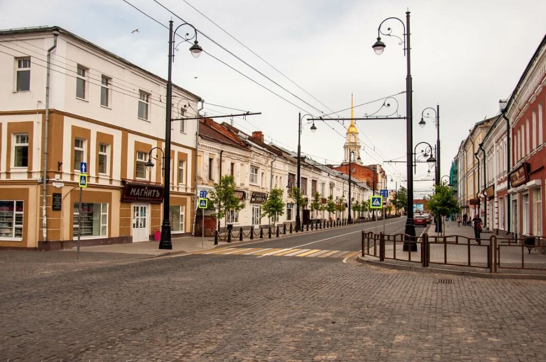 Вообще, в центре Рыбинска нет ни одной современной постройки, все дома двух-трёх этажные 18, 19 веков. Городские власти по инициативе одного из горожан в 2018 году приняли закон, согласно которому все вывески в историческом центре должны стилистически соответствовать эпохе рубежа 19-20 веков. Открывая магазинчик, необходимо предоставить свой макет вывески. Администрация помогает в оформлении. Гид призывала: «Открой лавку, и мы подарим тебе вывеску!». Так появились «Магнитъ», «Мытный рынокъ», «Консультантъ Плюсъ», «Росбанкъ», и другие прелестные вывески.