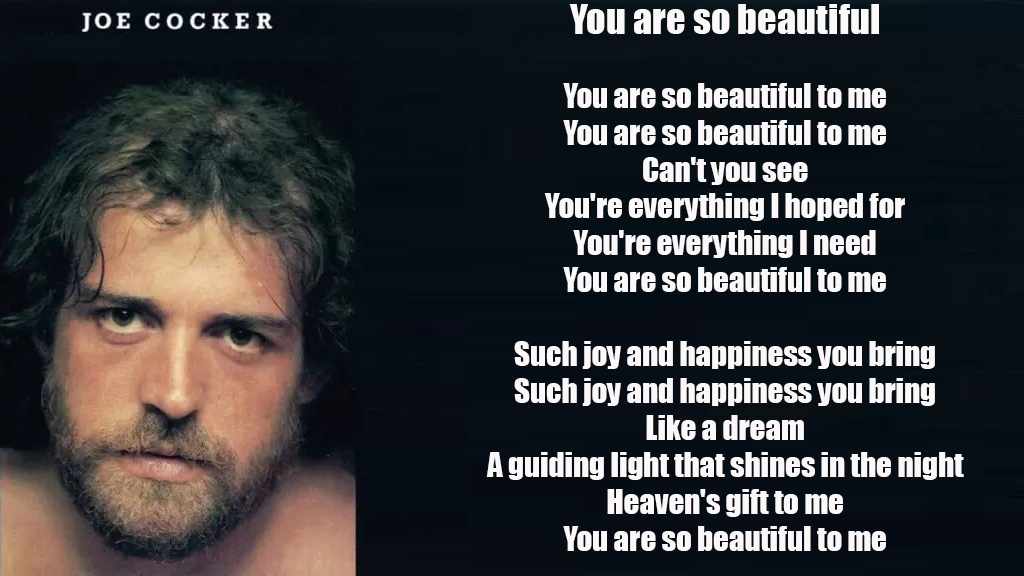 «You are so beautiful» Этот хит-сингл в очередной раз показал, как Джо Кокеру прекрасно удаются душераздирающие баллады, которые могли бы скатиться в сентиментальность, если бы не сила воли и харизма артиста. Нежная, хрупкая мелодия — даже не песня, а повторяющийся припев, балансирующий на грани фальцета, который певец, к счастью, использует экономно.