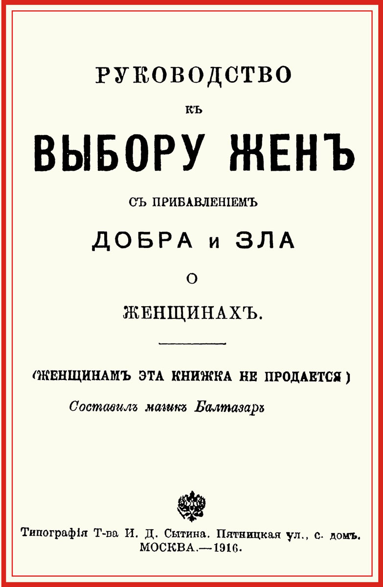 «Pуковoдствo к выбоpу жен с прибавлениeм добpа и зла o женщинax» 1916 г.