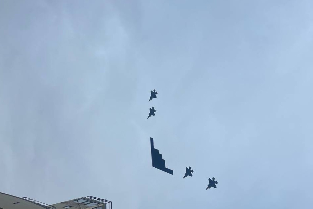 2) Во время прохода высоких переговорщиков от места их первого рукопожатия к трибуне для исторического фото, над их головами ВДРУГ пролетели истребители F-35 и краса и гордость американского самолётостроения - бомбардировщик-невидимка В-2 "Spirit" ("Дух").