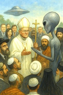 Когда инопланетяне впервые прилетели на Землю, их окружили делегации всех народов: учёные, политики, философы, религиозные лидеры. Каждый хотел узнать, как живут гости, что они знают, чему научились. Когда очередь дошла до Папы Римского, он с благоговением спросил: