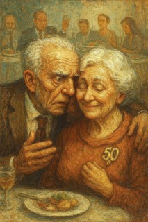 Семейная пара отмечает Золотую свадьбу. Когда гости после произнесённого очередного тоста опустошили свои бокалы и рюмки, и начали сосредоточенно поглощать закуски, супруг наклонился к своей жене и на ушко тихо спросил: