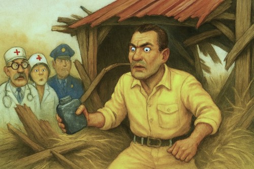Они принялись разгребать доски, готовясь к самому худшему. И в этот момент... из-под груды обломков медленно поднялась фигура. Весь в пыли и сене, с соломинкой за ухом и с почти пустой флягой в руке, стоял живой и, что характерно, абсолютно невредимый каскадёр Жора. От него так и веяло ароматом дорогого коньяка и полного, абсолютного недоумения.