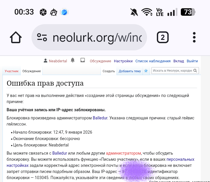 Знакомьтесь, членосос по жизни и модераст Balledur. Я выложил статью, он начал её кромсать с потерей смысла. Вежливое требование так не делать повело к бану. Жалобы на сайт neolurk.org пока не имели результата, так что оригинальный текст своей статью (Вот итоги его вандализма по ссылке) я скоро выложу здесь.
