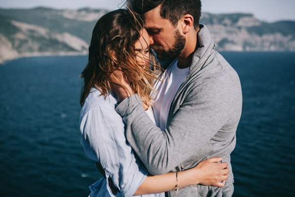Девушка смотрит на парня сверху вниз, ее ресницы опущены, а взгляд лучится.