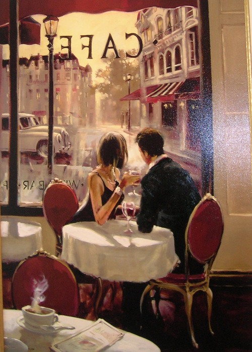 в парижском маленьком кафе.