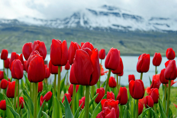 Тюльпаны на фоне белоснежных верхушек гор очаровательны!!!