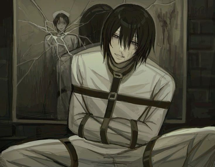 Руки связаны ремнями,