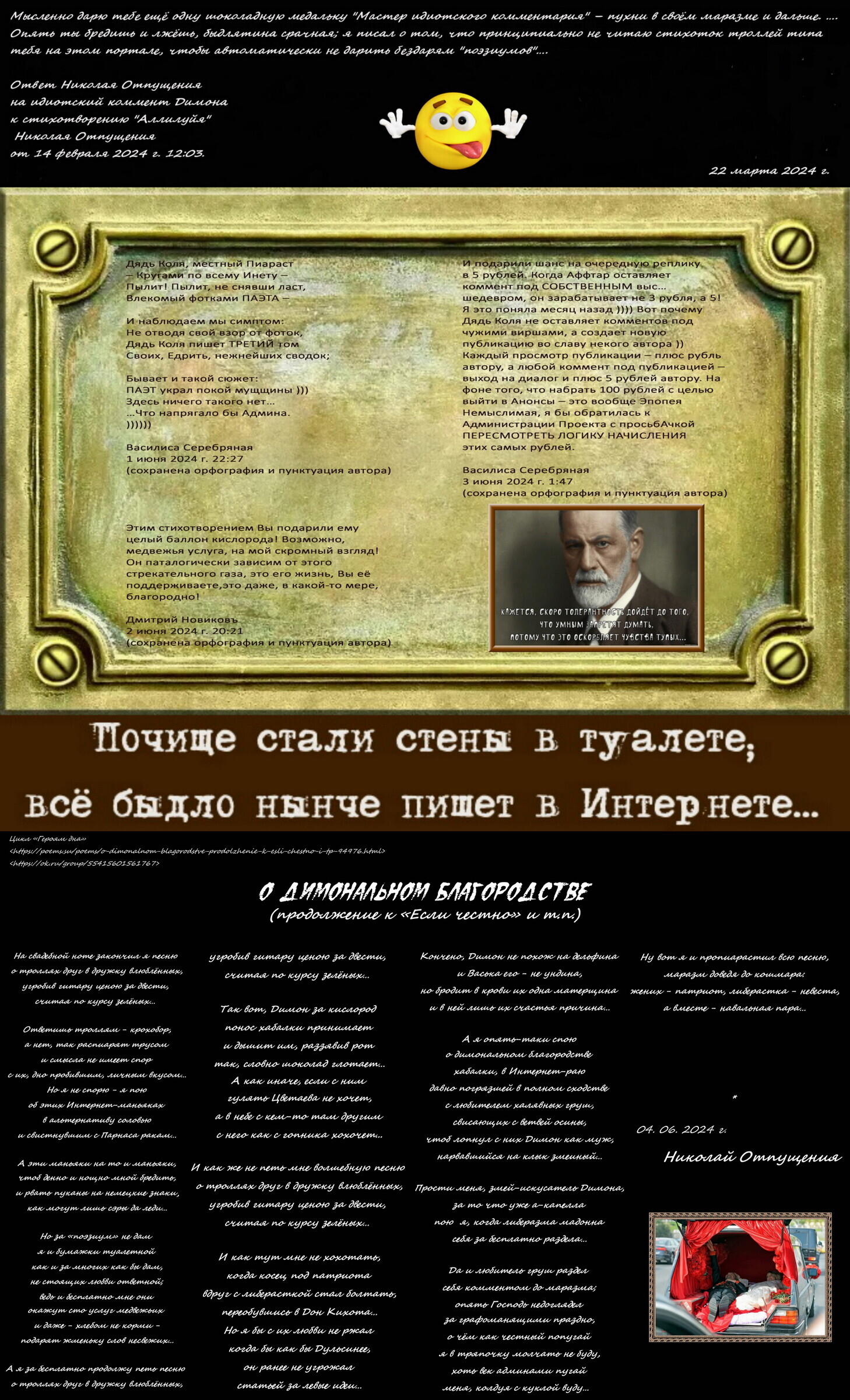 | | Стихотворение «О ДИМОНАЛЬНОМ БЛАГОРОДСТВЕ (продолжение к «Если честно» и т.п.)» | Предисловие: Цикл «Героям дна»