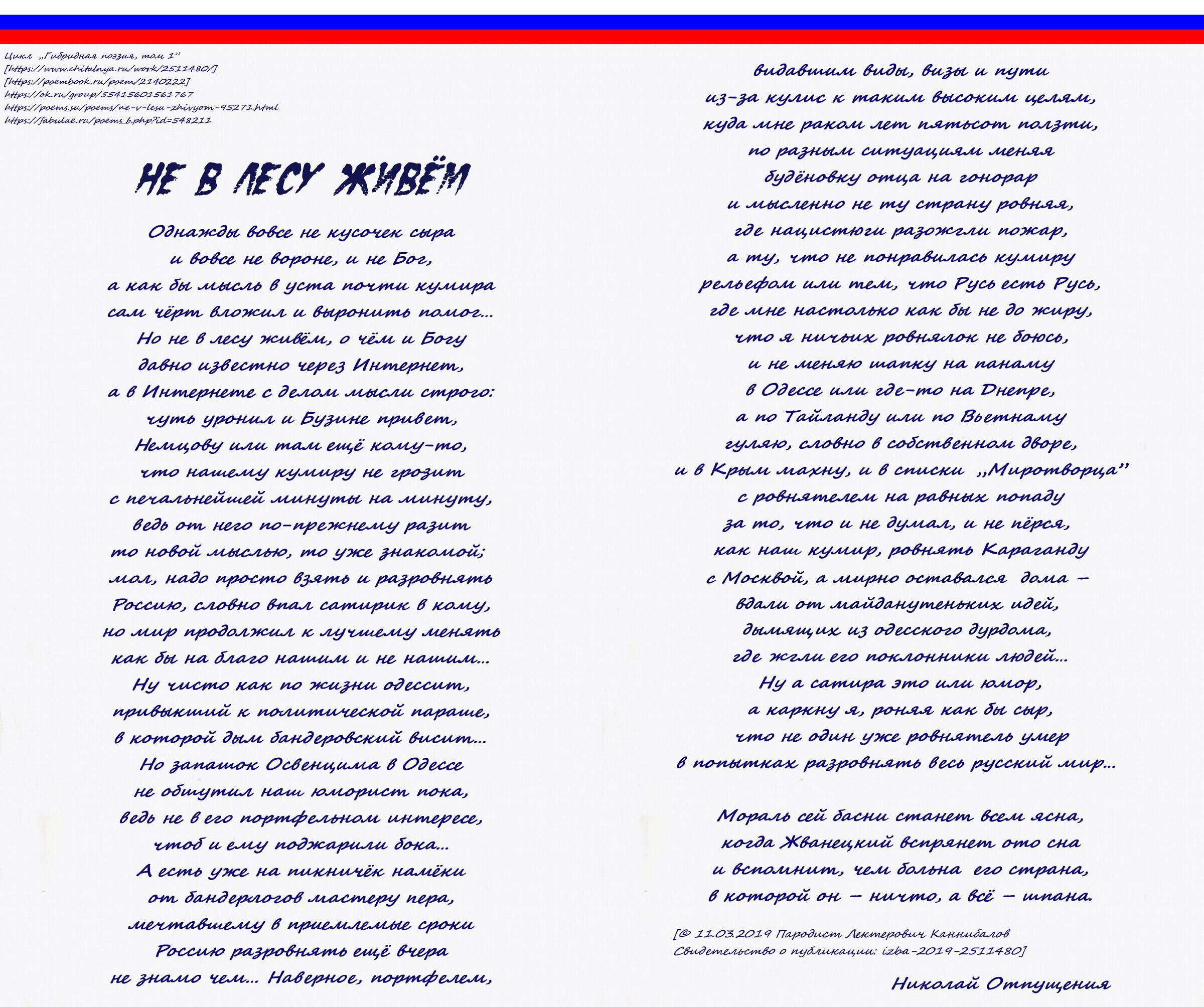 [© 11.03.2019 Пародист Лектерович Каннибалов