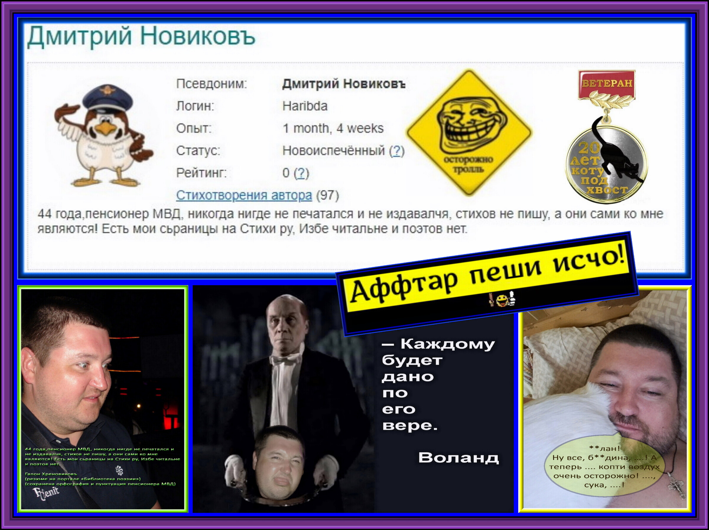 44 года,пенсионер МВД, никогда нигде не печатался и