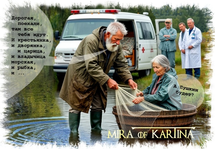 Возможно, что это самая лучшая сказка Александра Пушкина, с точки зрения правоприменения того самого намёка, о котором писатель говорил как об уроке для добрых молодцев. Вроде всё понятно, какие отрицательные качества у людей он высмеивает. Но не всё так просто, ведь в одиночку человек монстром не станет. Кто же помогает культивировать низменное, развивать сварливость, зависть и злобу? Даже представлять не нужно, что неуёмность фантазии у близких людей в современном мире встречается довольно часто. А там, где фантазии, там и безумие. Это второе произведение моей команды по теме пушкинской сказки. Итак, отматываем с конца несколько строк... Поехали!