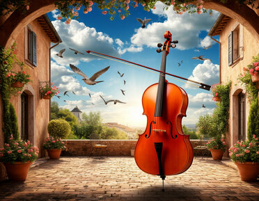 Небесной балериной на пуантах пристроившись на летнюю качель, играла во дворе Виолончель — сама… и без усилий музыканта… Звук растворялся в нежности анданте, ей эхом вторил каждый позвонок, как ласточка парил вокруг смычок. И слёзы, что прозрачней бриллианта, в глазах седого дембеля-сержанта сгущались и щипали кожу век, — да, он ещё остался «человек» … Он вспоминал, как в звании курсанта мечтал о героическом десанте и как искал для подвига предлог, – и вот остался без обеих ног и с фото в гэдээровском серванте. И мнится: Виолончель — мадмуазель, которую так хочется обнять! Но как Голгофа — кресло да кровать, – как Херсонес, он рушится в постель. В стекло окна с жужжаньем бьётся шмель, глуша нещадно музыки поток, и он, перевернувшись через бок, хватает в руку старую гантель... Осколки, как смертельная шрапнель, напомнили орудия стрельбу, – и — в клочья мир! И тихо... как в гробу. А впереди — светящийся тоннель... Ах, сколько длится эта карусель! О, сердце, сердце! Слушай, не молчи... Вон с неба, глянь, прицельно бьют лучи! ...Играла во дворе Виолончель...