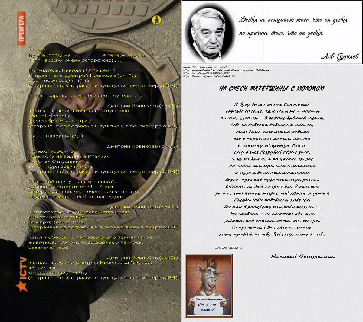 ….ты….мразь, …. Береги себя, чучело, ….!