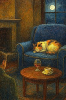 Свернулась в кресле кошка,