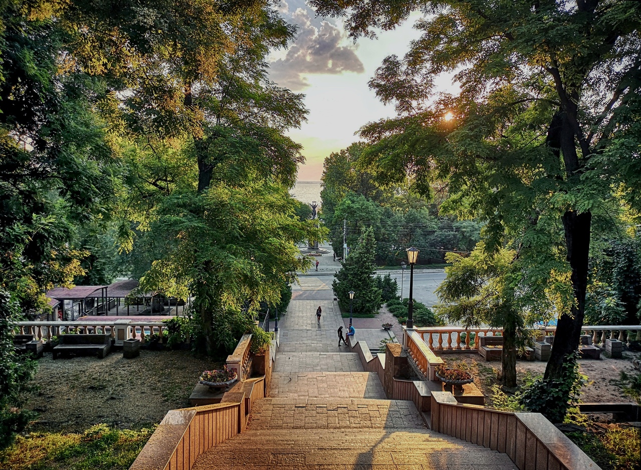 Парк приветливо-просторно в темноте нам корчит рожи.