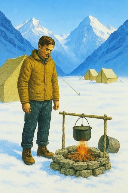 Обуваюсь, из палатки... прямо в снег я угодил.