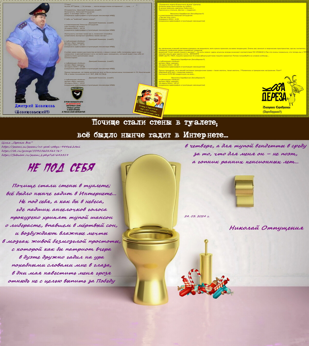 Считаю ниже своего достоинства вступать с вами в какую либо полемику, одно знаю наверняка: в данный момент есть на свете один гражданин, который ходит под себя от удовольствия,прочитыввя наши
