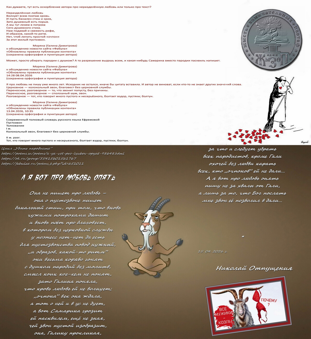 Может, просто убирать пародии с душком? А то разрешение выдашь всем, и какая-нибудь Самарина вместо пародии пасквиль напишет.