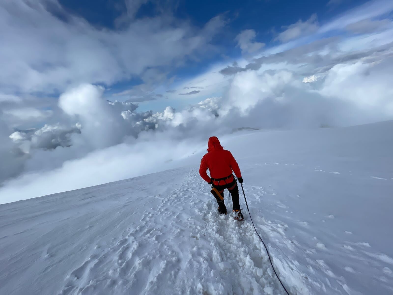 В последний рывок из штурмового лагеря отправились самые крепкие. Шли с ночи, потому что, медленно. Вон он, двуглавый пик Эльбруса! Кажется, совсем рядом, всего каких-то полторы тысячи метров! Шаг в шаг по снежному насту. Шаг в шаг в связке, чувствуя движение спутников. За алой лентой рассвета под черными тучами. Шаг в шаг – до бесконечности. В туманную пелену, где не видно ни зги. Когда идти стало невозможно, продвигались на коленях. Потом ползком. Одышка сжимала горло, губы покрылись коростой. Они падали, поднимались, стремясь вперед. Одиннадцать часов финального подъема.