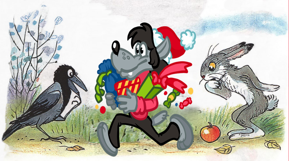 А Снеговику приказал ехать в последних санях и охранять подарки от злого волка Гриши, хитрой лисы Алисы и чёрной вороны Софьи, которые любили тырить Новогодние подарки.