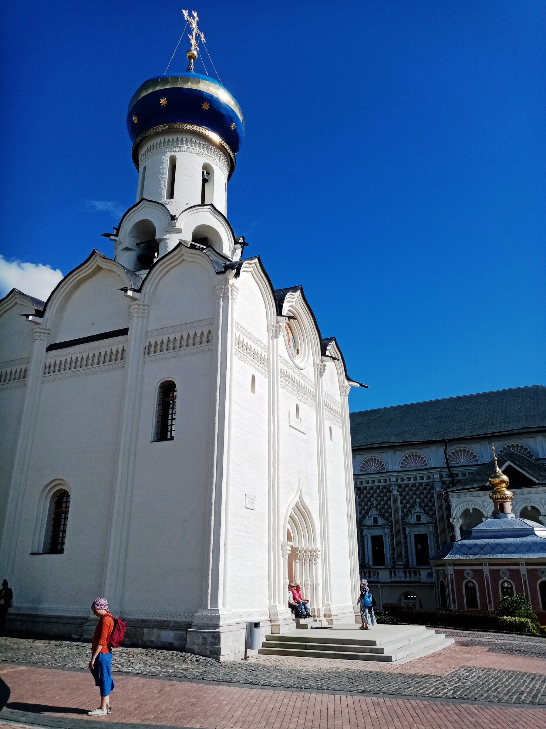 Глоток святой воды утолял жажду. Платок прикрывал от солнца голову в очереди к мощам Сергия Радонежского. Казалось, все помогало и призывало ПРИСОЕДЕНИТЬСЯ к той душевной чистоте, что царила в сине-бело-золотом пространстве. Было радостно, что мы здесь с самыми родными и близкими людьми, со своей семьей. Долго ещё будут радовать мелочи из церковных и сувенирных лавочек, напоминая этот необыкновенный день.