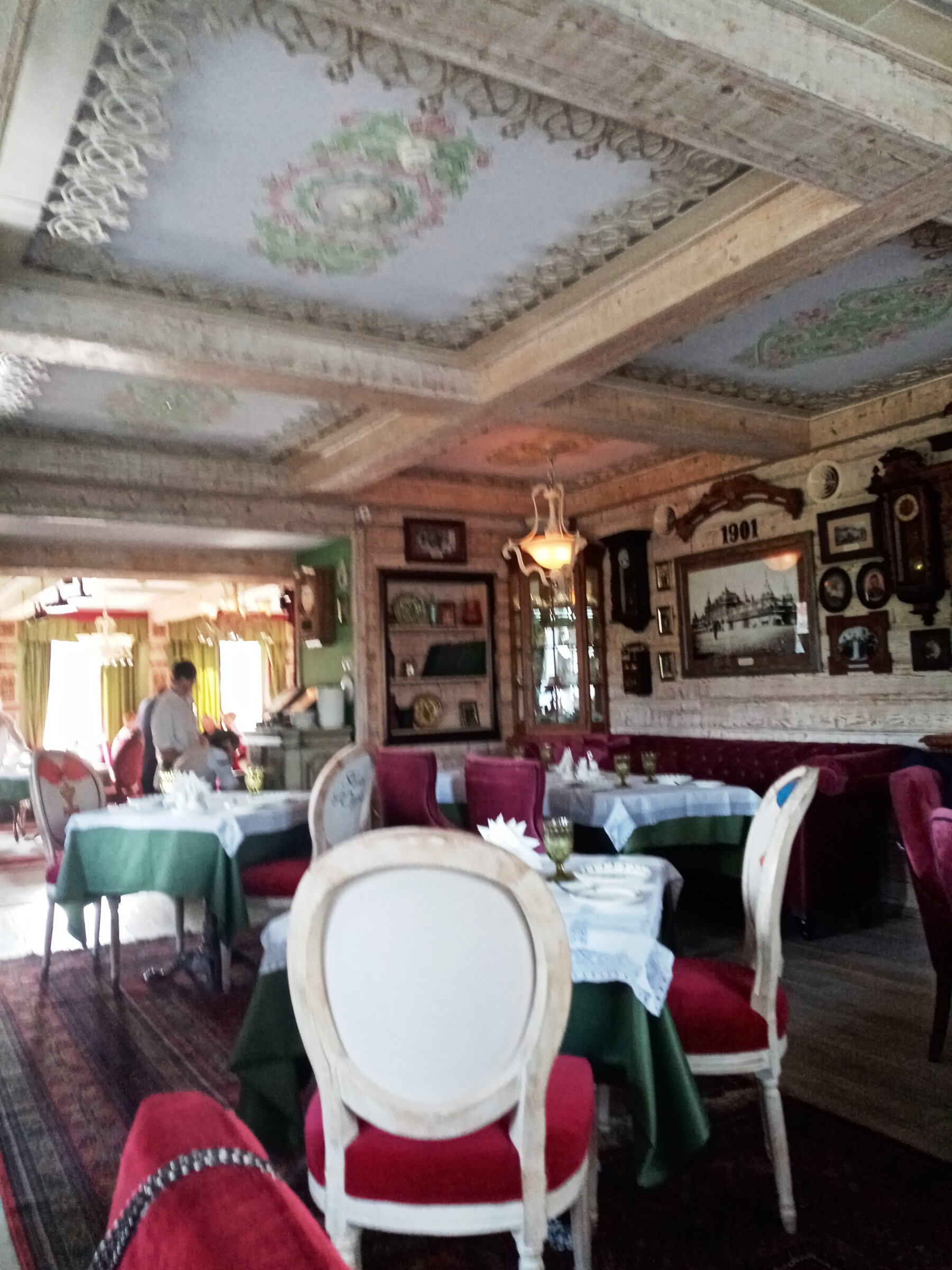 День, проведённый на воздухе, пробудил здоровый аппетит. Выходящих из Лавры туристов у подножья холма поджидает чудесный ресторан «Царский дворик». Он радует глаз старинным русским стилем, интерьером, интересной историей, вкуснейшей русской едой. Борщ, домашние пельмени и клюквенный морс были божественны! А на «комплимент» от заведения подали свежеиспечённый хлеб и икру кабачковую, «заморскую», собственного приготовления.