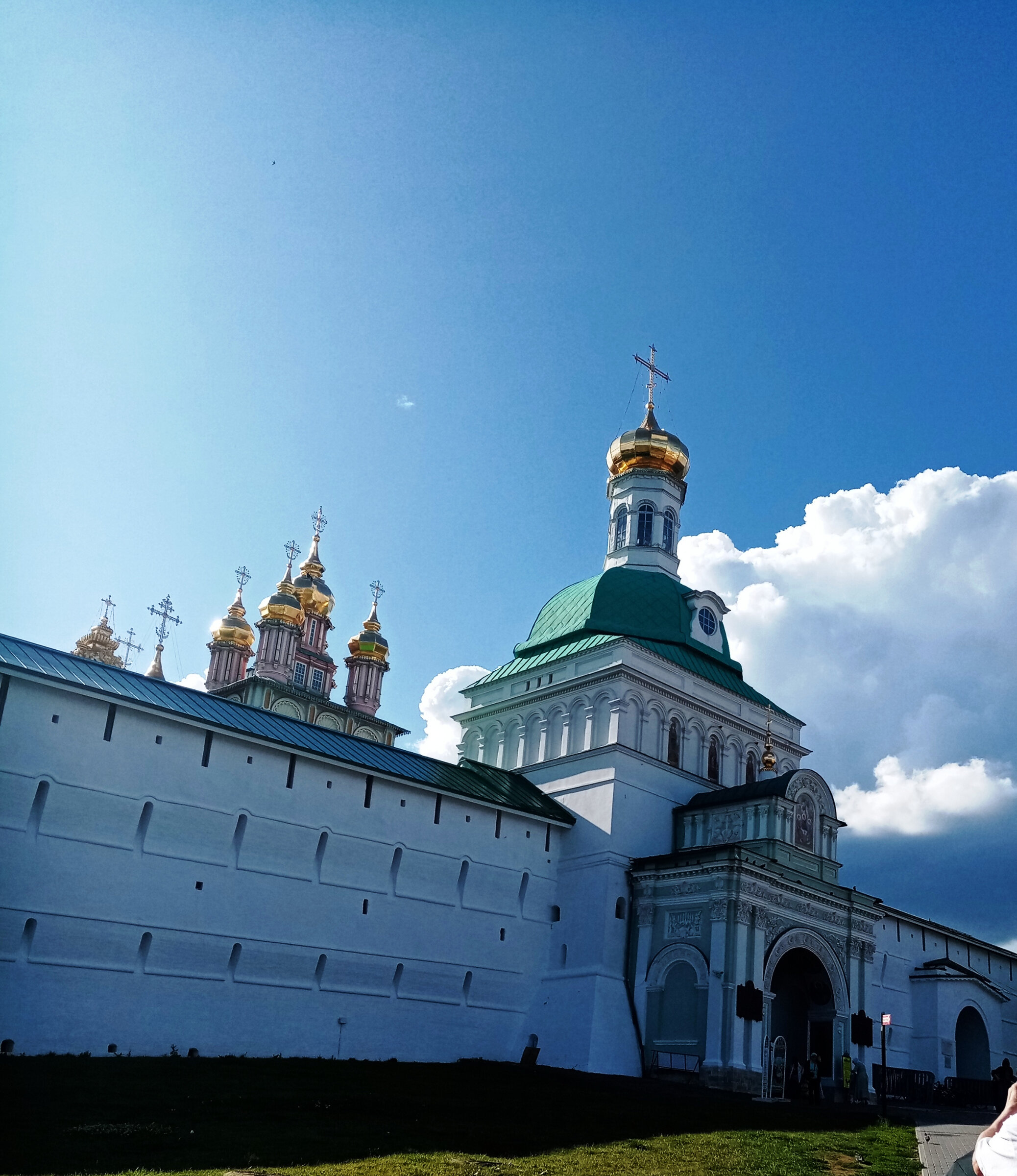 День, в который мы посетили Троице-Сергиеву Лавру, порадовал ярким солнцем, синим небом с белыми облаками, умеренным теплом, словно благословляя наше начинание. От вида белокаменного монастыря с чудесными куполами, расположенного на холме, перехватило дух. И даже нас, обычных, мирских туристов, охватила волшебная Благодать. Здесь слова затихали. А чувства рвались наружу. На лицах паломников смирение, умиротворение. Их крылья накрыли и нас, оставив далеко Московскую суету.
