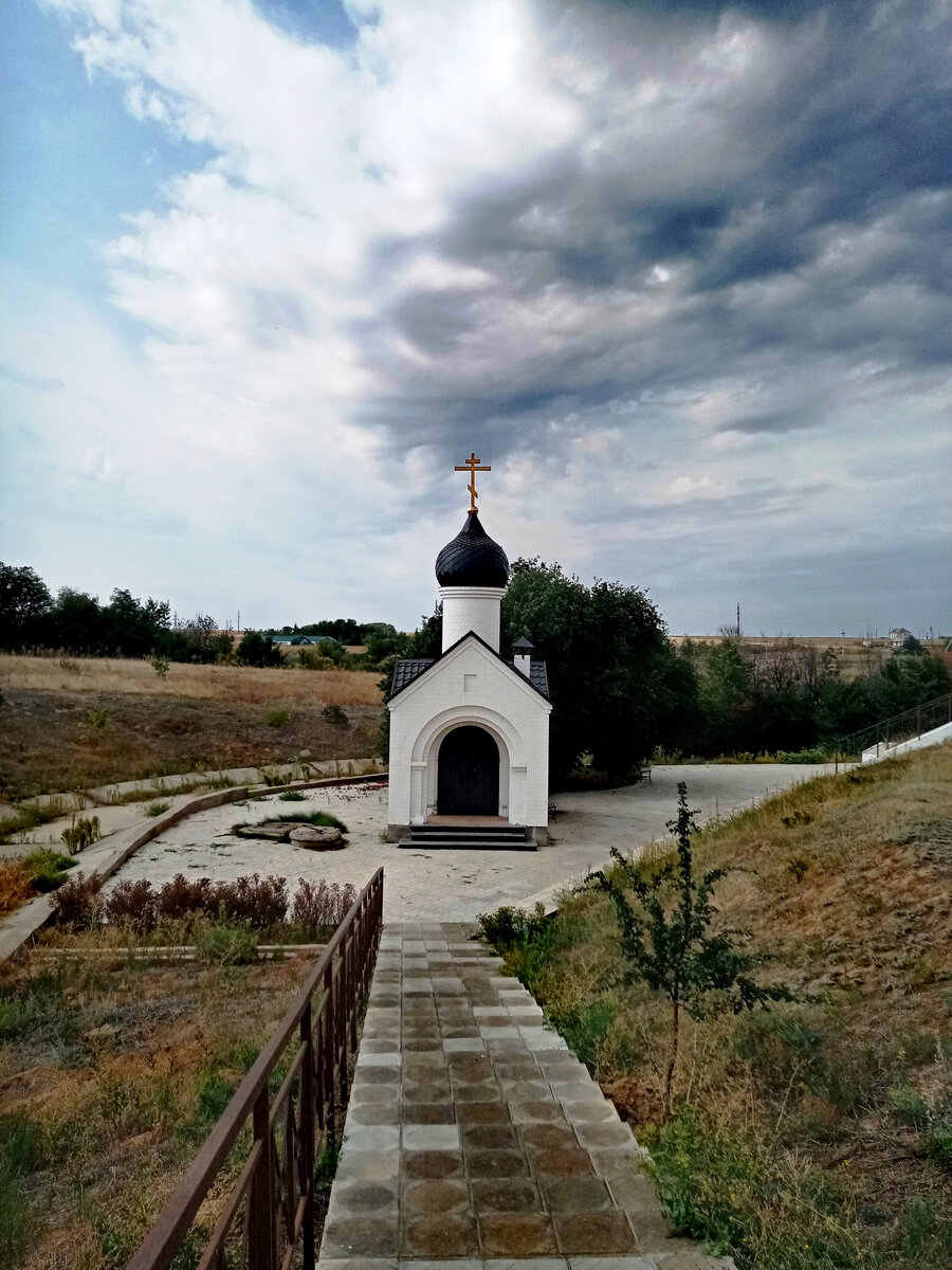 Рядом возвышается часовня. Набрать воды и посидеть в тени раскидистой яблони можно в любой день, бесплатно.