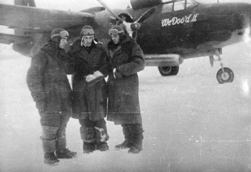 Полковые инженеры и техники вместо американских поставили более мощные советские пушки, заменили прицелы. В перерыве между боями провели короткий митинг. Много добрых слов было сказано в адрес Рэда Скелтона. Самолету присвоили номер «единица» и вручили экипажу Петра Стрелецкого, воевавшего с первого дня Великой Отечественной. Такому пилоту, действительно, незачем было советовать, как воевать. Штурманом с Петром летал Николай Афанасьев (как и командир, он тоже стал Героем Советского Союза), стрелком-радистом – Иван Трусов.