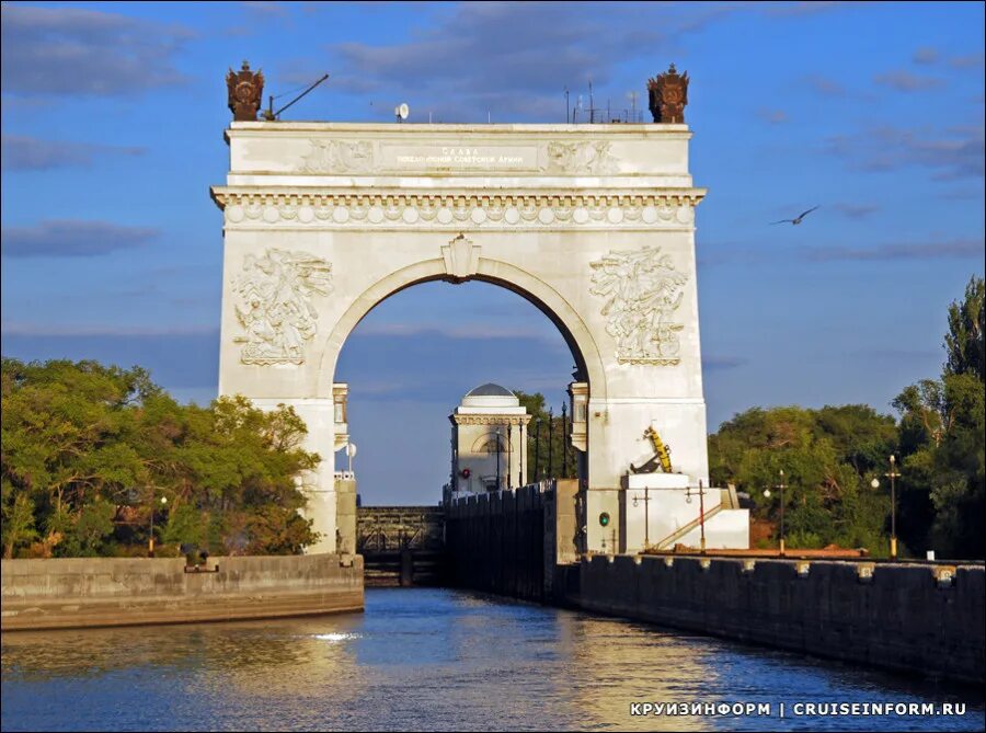 Волго-Донской канал проходит по территории Волгоградской и Ростовской областей и имеет 13 шлюзов, два из них увенчаны триумфальными арками. Помимо первого шлюза, такой чести удостоился 13-ый, расположен он как раз в Пятиморске. Благодаря величественному архитектурному объекту шлюз стал яркой достопримечательностью, которая входит в программу круизов и привлекает внимание сухопутных туристов, приехавших в Пятиморск.