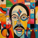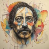 Вторая и третья картинки были рисунками уже вполне узнаваемых образов людей. Но над четвёртой я буквально "завис" - это был прекрасный портрет настоящего человека, и даже цветовые пятна/абстракции нисколько не портили его. Но особенно поразил меня взгляд этого человека - тревожный (тревожащий), словно из глубины...