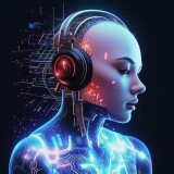 Первая генерация была ожидаемо абстрактной картинкой, только прозрачнее и воздушнее, чем абстрактный автопортрет Художника. Вторая картинка удивила и обрадовала - весёлый роботёнок буквально светился от радости и держал карандаш - вероятно, он и рисовать умел. На третьей был ребёнок, по видимому - девочка, на четвёртой - она же, но уже девушка, в наушниках, как символ того, что её мир - это звуки. На пятой тоже была абстракция, но хотя в абстракциях я не разбираюсь, тут понял, что это сама музыка, безграничная и красивая, пронзает и раскрашивает пространство и делает саму жизнь гармоничной...