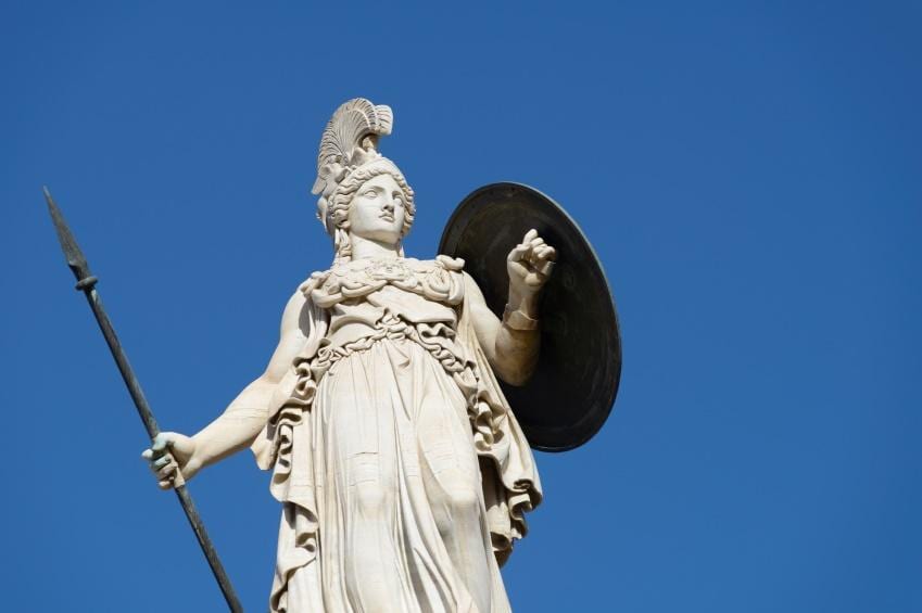 Афина Паллада – дочь верховного бога Зевса, появившаяся из его головы в полном вооружении: в шлеме, панцире, с копьём, мечом и щитом. Афина – богиня мудрости, знаний, искусств и ремёсел, а также справедливой, организованной войны. С ней всегда крылатая богиня победы Ника, поэтому Афина не знает поражений и побеждает даже самого бога войны Ареса. В троянской войне Афина поддерживала ахейцев и помогла им захватить Трою. Афина была покровительницей всех греческих городов, но в первую очередь, конечно, города, названного её именем.
