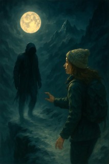Я почувствовала, как меня тянут. Не руками - будто сама иду. Я вышла из палатки. Он шёл впереди. Я за ним. Мы поднимались по леднику. Я не чувствовала ног. Только страх. На гребне он остановился. Повернулся. Его лицо было обгоревшим, губы - потрескавшимися. Глаза - как угли. Он смотрел на меня долго. Потом прошептал: