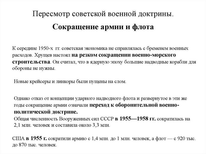 [quote]В связи с проводимой реформой по сокращению численности личного состава предусматривается законсервировать (или списать на металлолом) двести семьдесят надводных кораблей различного водоизмещения. Вывести из состава флота ещё большее количество в этом году не представляется возможным. Предлагаю сто девять единиц плавсостава законсервировать в следующем 1961 году. ***