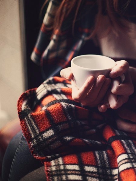 Походит и набрасывает на НЕЁ — старый, потёртый, но яркий плед.