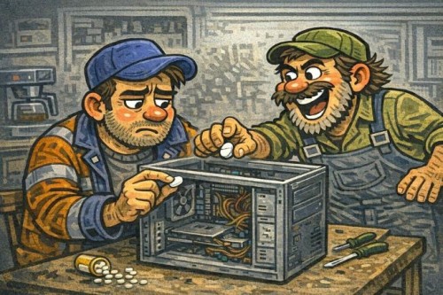 В мастерской, где работали Геродот Степанович и Макар Андреевич, народ был простой, но прогрессом слегка подпорченный. Раньше всё было понятно: если что-то не работает, значит, сломалось. А теперь техника такая пошла, что она вроде работает, но как-то не так. А люди старой закалки, вроде Макара и Геродота, от этого нервничали. Потому что если вещь умнее хозяина, это уже не вещь, а недоразумение.