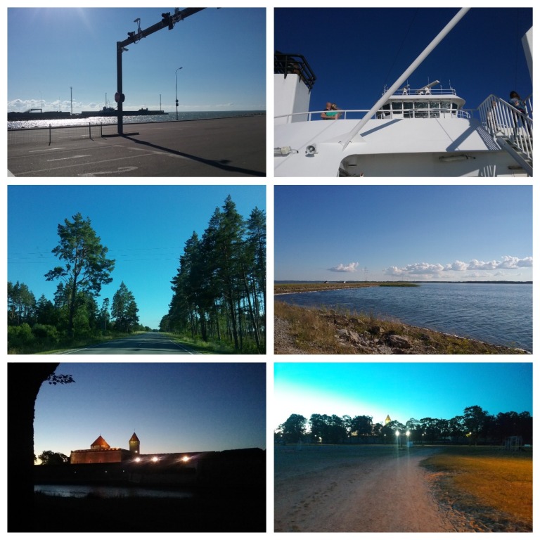 Очереди на переправе в Виртсу* практически не было –около двадцати автомобилей выстроились в ожидании парома. Ждать оставалось минут пятнадцать, и подруги-путешественницы с интересом осматривались вокруг – причал, ветряки, много где встречавшиеся по пути в Эстонии, какие-то дымовые трубы вдалеке и море, радостно сверкающее в лучах движущегося к закату солнца. И вот, наконец, белоснежный с голубыми полосами красавец «Нiiumaa» пришвартовался к пристани. Быстро запарковав машину на верхней палубе, девушки отправились осматривать паром. Переправа на остров Муху длится недолго – чуть меньше получаса, но они успели увидеть просторные салоны, кафе и бар, детские игровые пространства. Спокойная погода позволила также полюбоваться морем с открытых палуб. Какая-то радостная атмосфера царила вокруг, и это общее настроение передалось немного подуставшим в дороге девчонкам. Ведь они путешествовали уже несколько дней, и плотная сетка мероприятий совершенно не позволяла расслабиться.