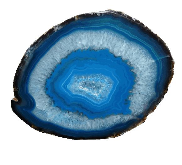 Голубой агат считается редким камнем. В его цветовой гамме обычно преобладает голубой фон, включающий несколько полосок более ярких голубых оттенков, а также белого, и даже коричневого цвета. Иногда агат даже называют земной радугой, потому что в её различных формах концентрические обода могут формировать почти каждый цвет, который существует в натуральном виде в природе, включая бесцветную форму.